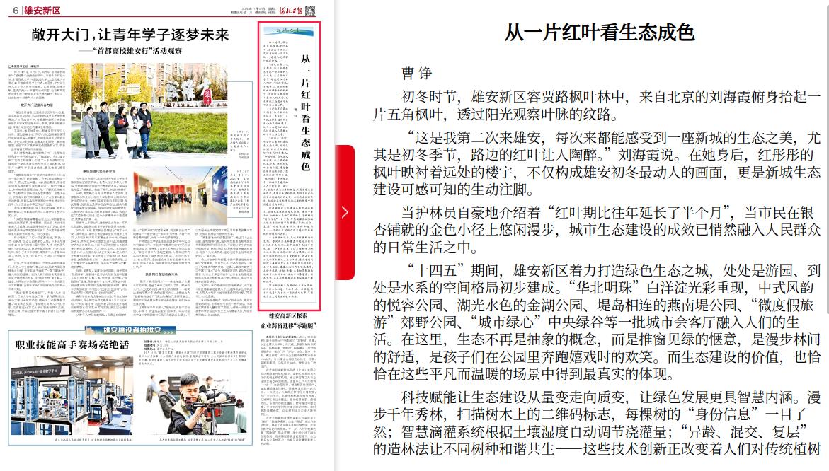 雄安新区的生态建设仍在深入推进,这片热土上的每一片红叶、每一处绿意,都在诉说着人与自然和谐共生的故事,汇聚成生态文明建设的壮丽画卷。