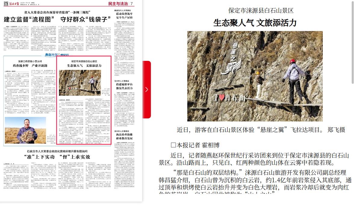 涞源白石山旅游开发有限公司总经理助理梁坤告诉记者,飞拉达是白石山景区去年推出的极限攀岩项目,吸引了大批来自北京、天津等周边省市的年轻游客。此外,云端漫步、悬崖大荡绳等体验项目一经推出也在短视频平台爆火,引来大量年轻粉丝打卡。