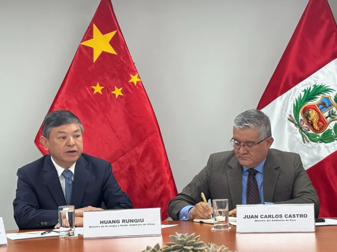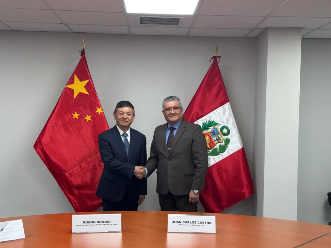生态环境部部长黄润秋与秘鲁环境部长卡斯特罗举行双边会谈