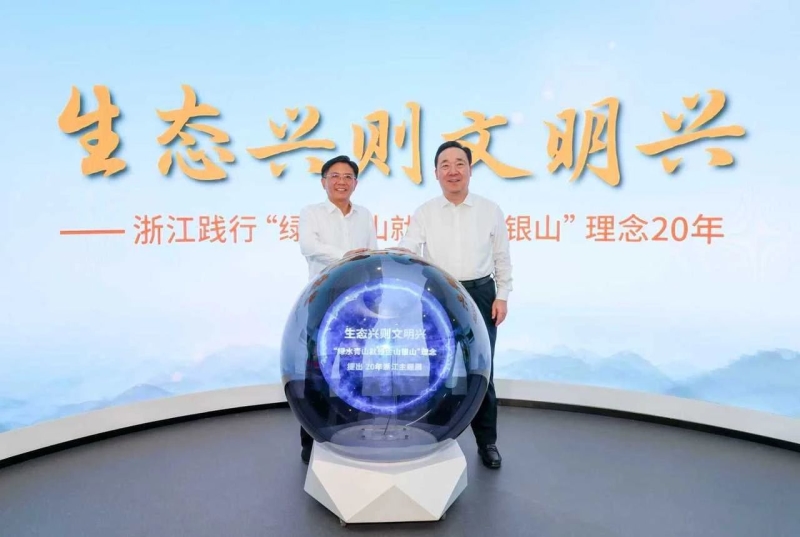 8月11日上午,王浩、孙金龙前往安吉县余村,出席生态兴则文明兴——“绿水青山就是金山银山”理念提出20年浙江主题展开幕式,共同启动开展并参观展览。潮新闻记者 李震宇 摄