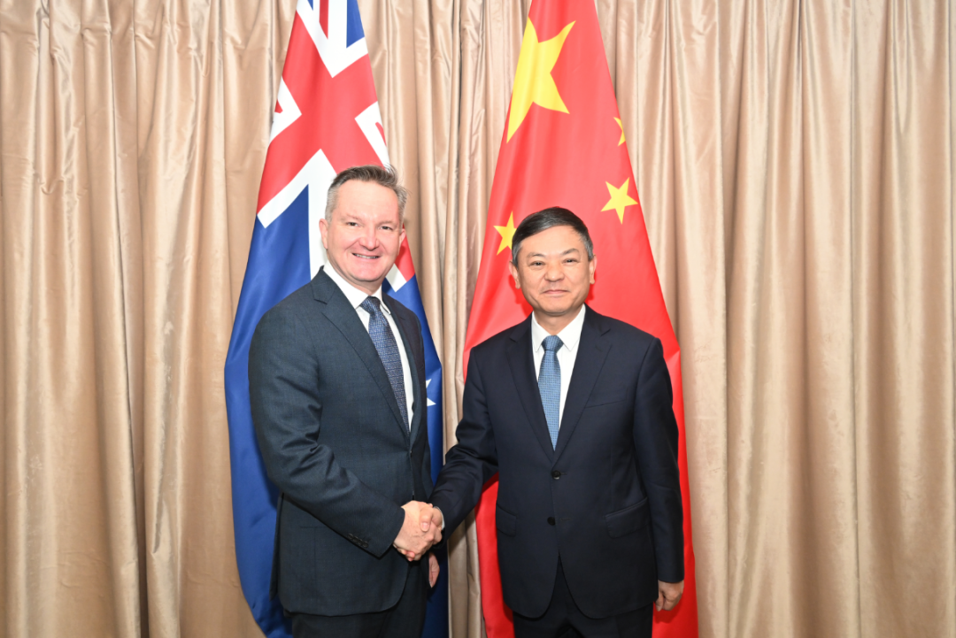 鲍恩赞赏中方为推动全球气候治理和绿色低碳转型所作的贡献,介绍了澳方在可再生能源发电、电动汽车、蓄电池制造等气候变化领域相关工作进展和成效。鲍恩表示,中国是澳大利亚在气候变化领域的重要合作伙伴,愿与中方进一步加强对话合作,共同推动气候治理多边进程。鲍恩还介绍了澳方近期公布的新一轮国家自主贡献,以及为申请主办2026年联合国气候变化大会所开展的相关工作。