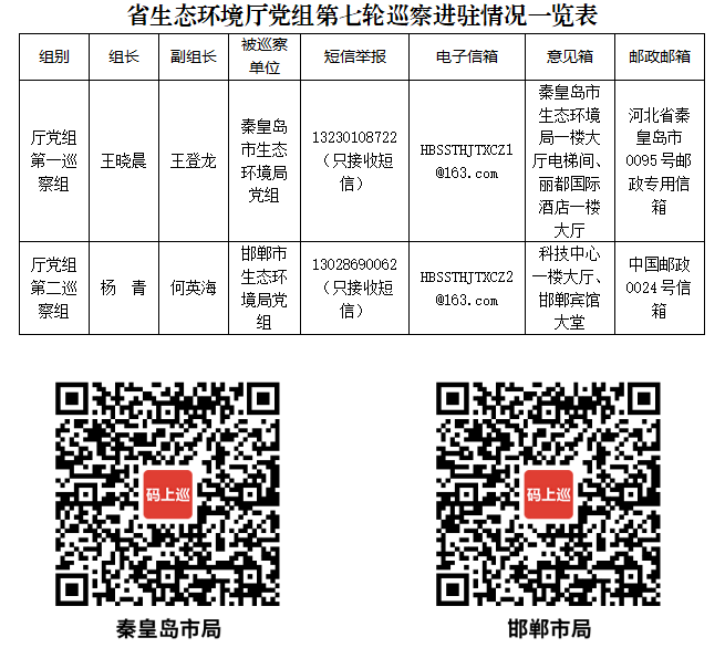 根据省生态环境厅巡察工作统一安排,目前,省厅党组启动第七轮巡察工作,分别对秦皇岛市生态环境局党组、邯郸市生态环境局党组开展常规巡察。8月31日,厅党组第一、第二巡察组完成巡察进驻工作。