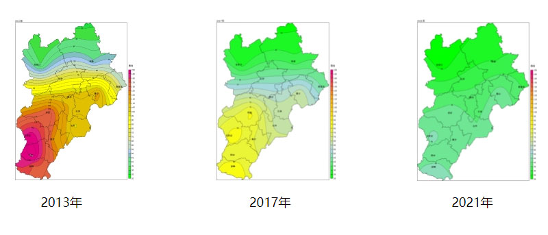 2021年,经过全省共同努力,大气污染物浓度持续下降、达标天数明显增加,重污染天数逐年减少。大气污染物协同控制、大气污染治理取得里程碑式突破,蓝天保卫战取得历史性突破。
