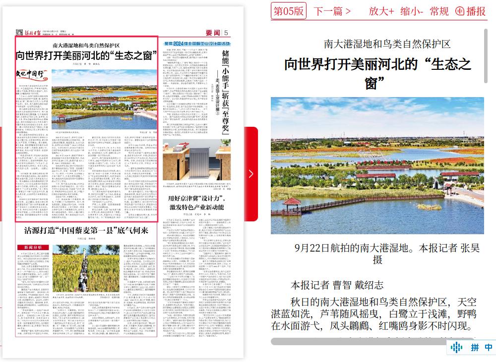实现生态蝶变的南大港,向世界打开美丽河北的“生态之窗”。