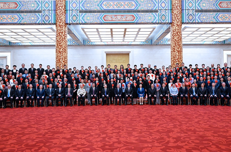 会前,中共中央政治局常委、国务院总理李强会见大会代表并同大家合影。