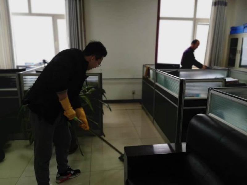 临港经济技术开发区生态环境分局值班人员每天对办公室、会议室、楼道等部位进行全方位消毒,本日共全部消毒4次,同时督促全部工作人员测量体温,建立台账,做到科学防范,确保万无一失。