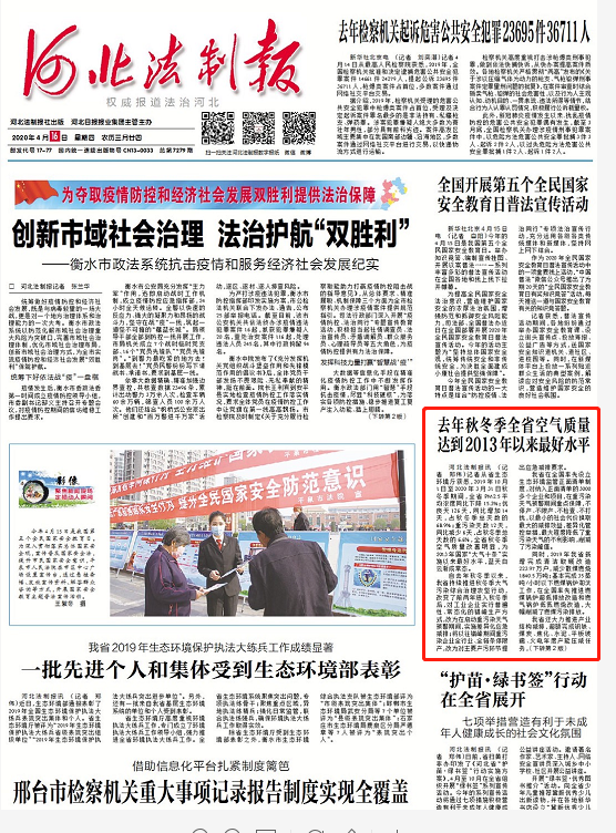 河北法制报:去年秋冬季全省空气质量达到2013年以来最好水平