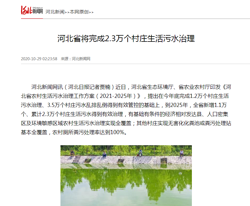 方案提出,河北省将以减量化、资源化、生态化为原则,突出重点区域,坚持“应治尽治、就地就近”,选择适宜模式,着力解决乡镇所在地、中心村等重点区域以及集中式饮用水水源地保护区、白洋淀及入淀河流和大运河河北段、潮白河流域沿线等环境敏感区域村庄生活污水收集处理问题和群众日常生活问题。