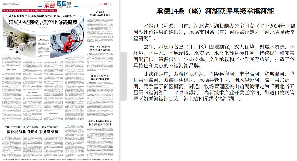 河北日报:承德14条(座)河湖获评星级幸福河湖