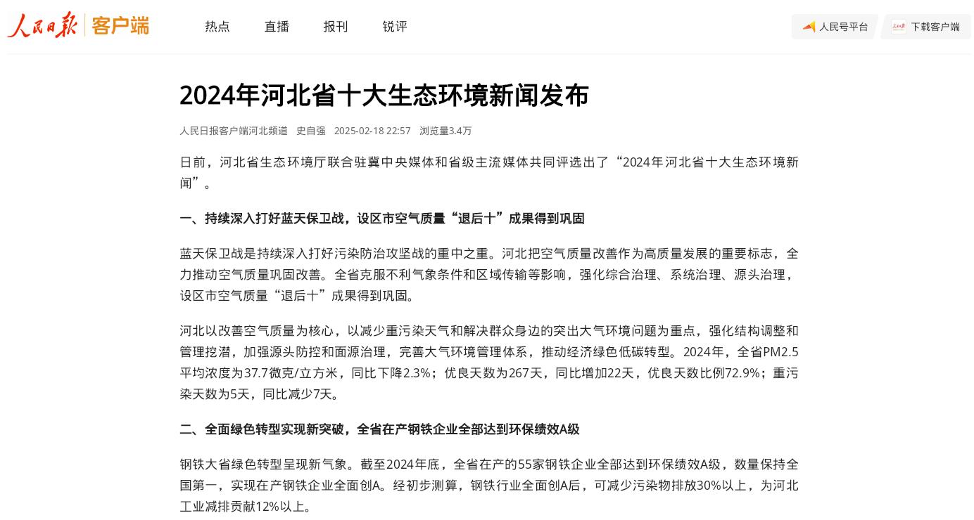 人民日报客户端:2024年河北省十大生态环境新闻发布