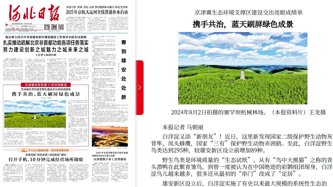 河北日报:京津冀生态环境支撑区建设交出亮眼成绩单 携手共治,蓝天刷屏绿色成景
