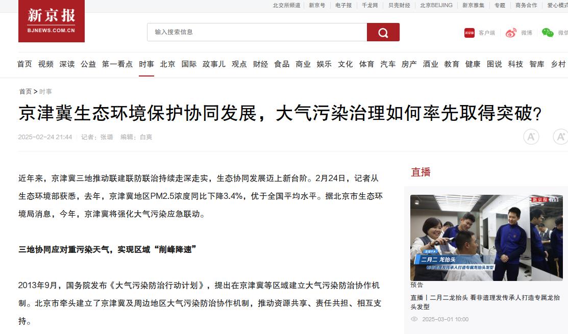 新京报:京津冀生态环境保护协同发展,大气污染治理如何率先取得突破?