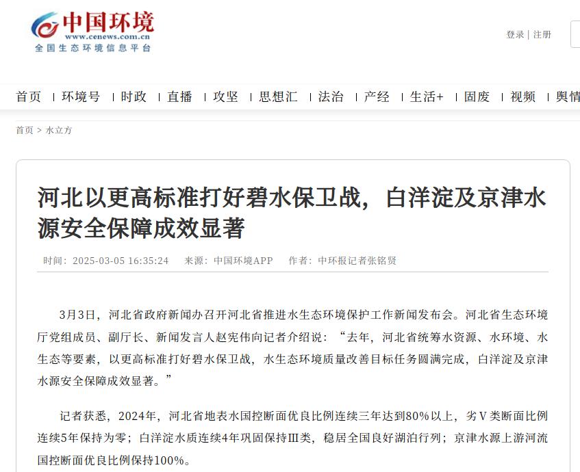 中国环境客户端:河北以更高标准打好碧水保卫战,白洋淀及京津水源安全保障成效显著