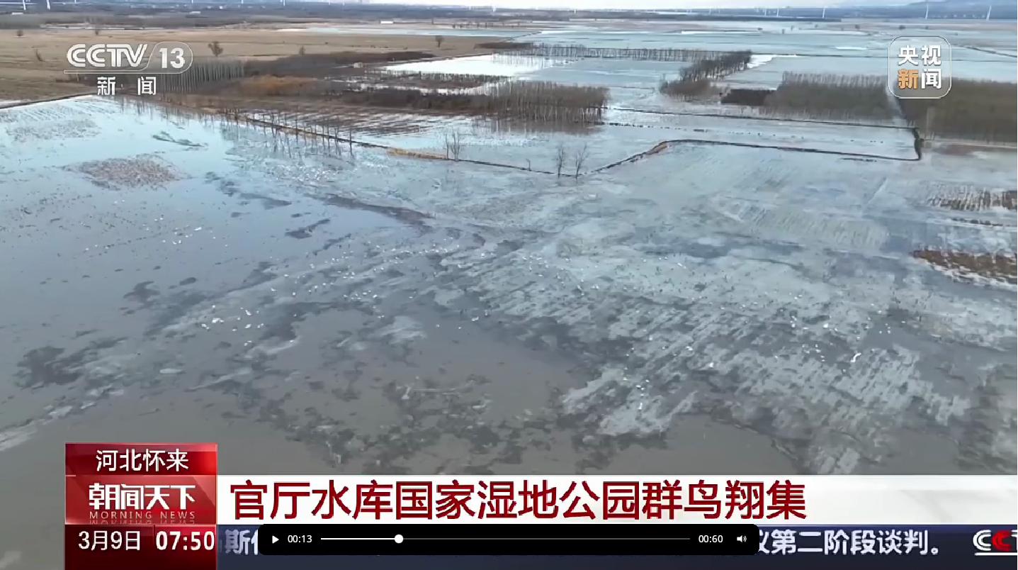 央视新闻《朝闻天下》:河北怀来官厅水库国家湿地公园群鸟翔集