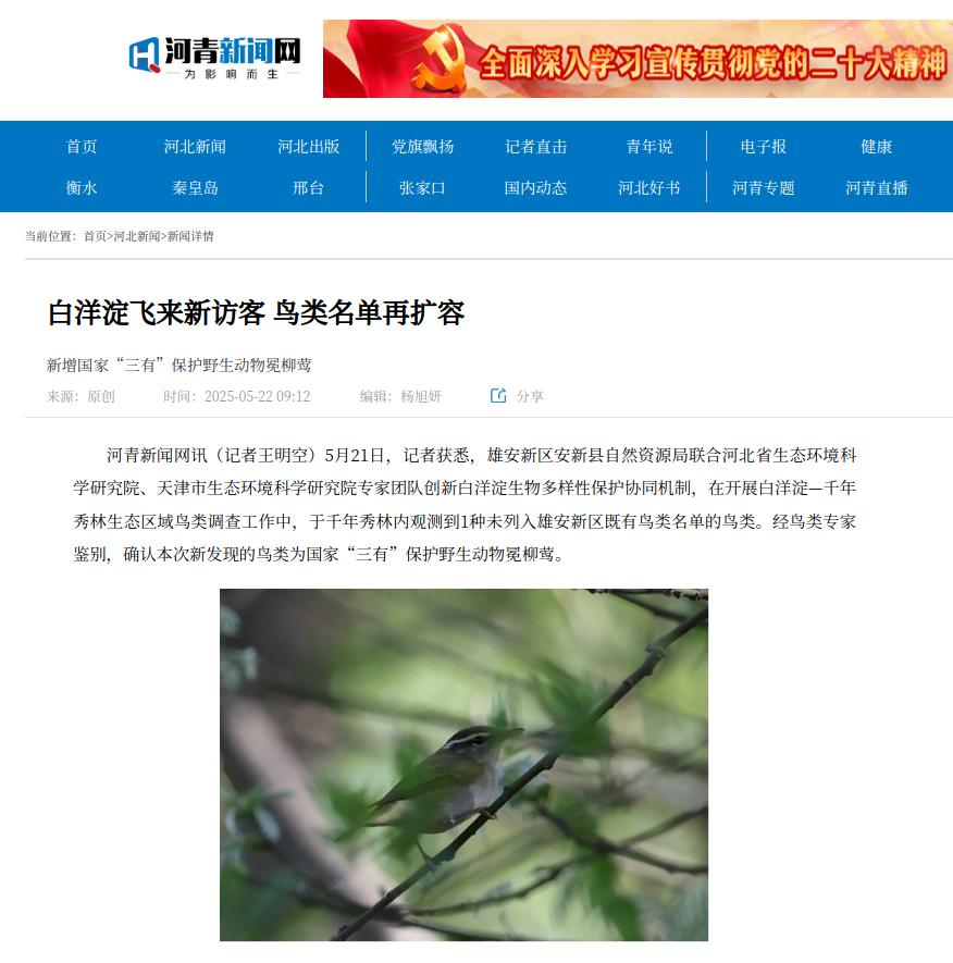 河青新闻网:白洋淀飞来新访客 鸟类名单再扩容 新增国家“三有”保护野生动物冕柳莺
