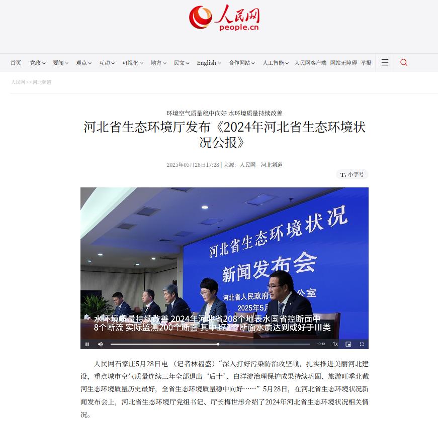 人民网:环境空气质量稳中向好 水环境质量持续改善 河北省生态环境厅发布《2024年河北省生态环境状况公报》
