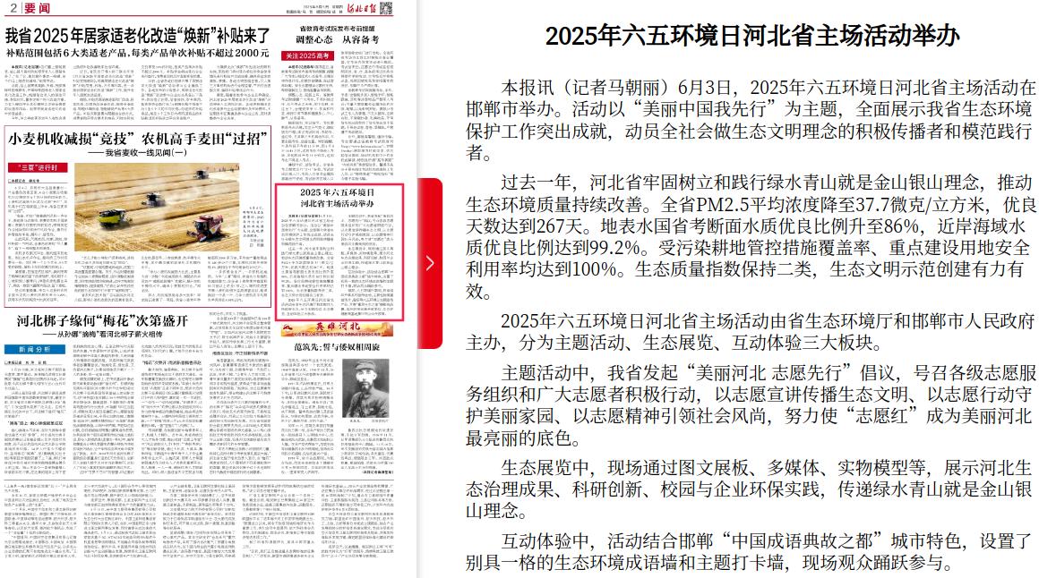 河北日报:2025年六五环境日河北省主场活动举办