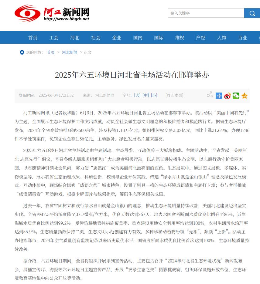 河工新闻网:2025年六五环境日河北省主场活动在邯郸举办
