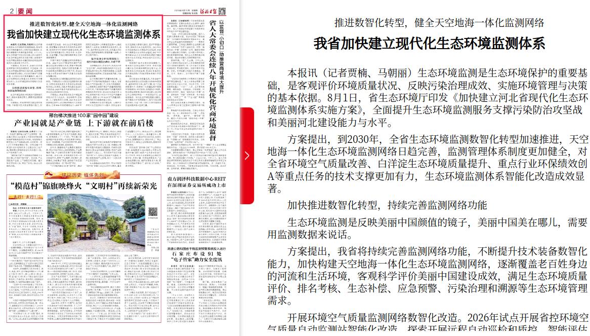 河北日报:推进数智化转型,健全天空地海一体化监测网络 我省加快建立现代化生态环境监测体系