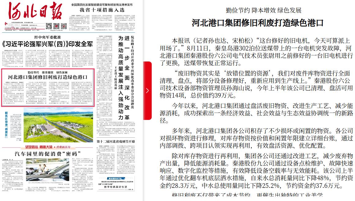 河北日报:勤俭节约 降本增效 绿色发展 河北港口集团修旧利废打造绿色港口