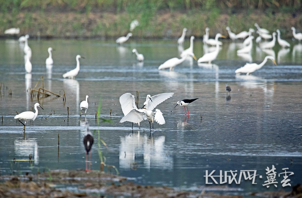 白鹭等野生鸟类正在觅食。长城网·冀云客户端通讯员 李拥军 摄