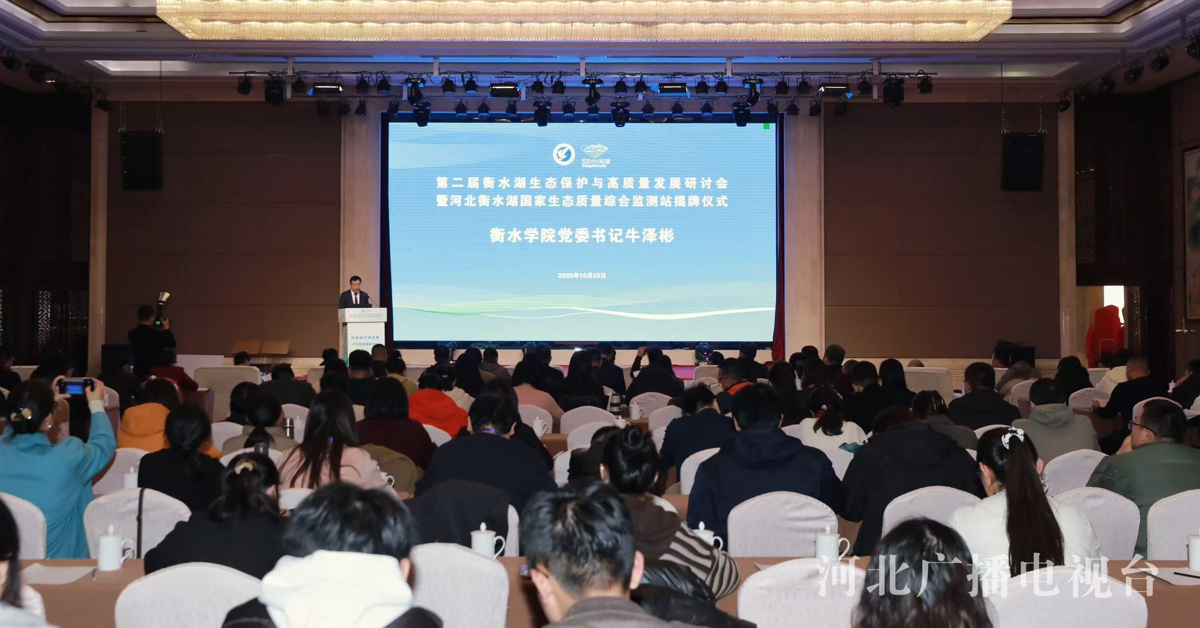 冀时客户端报道(河北台 王美中 田默涵 通讯员 朱光星 张洪宁)10月25日,第二届衡水湖生态保护与高质量发展研讨会在衡水市举行。此次研讨会由中国环境科学学会支持指导,衡水学院、衡水滨湖新区管委会和河北省生态环境监测中心联合主办,吸引了来自全国各地的约200名专家学者及代表参加,共商衡水湖生态保护与区域高质量发展大计。
