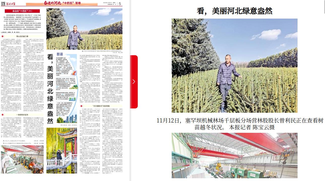 “十四五”期间,塞罕坝“二次创业”迈出坚实步伐,累计完成森林抚育49.8万亩,混交林比例从21.4%提升至26.1%,森林生态系统的多样性、稳定性、持续性进一步增强,成功获评全国森林可持续经营试点单位和《联合国森林文书》示范单位。