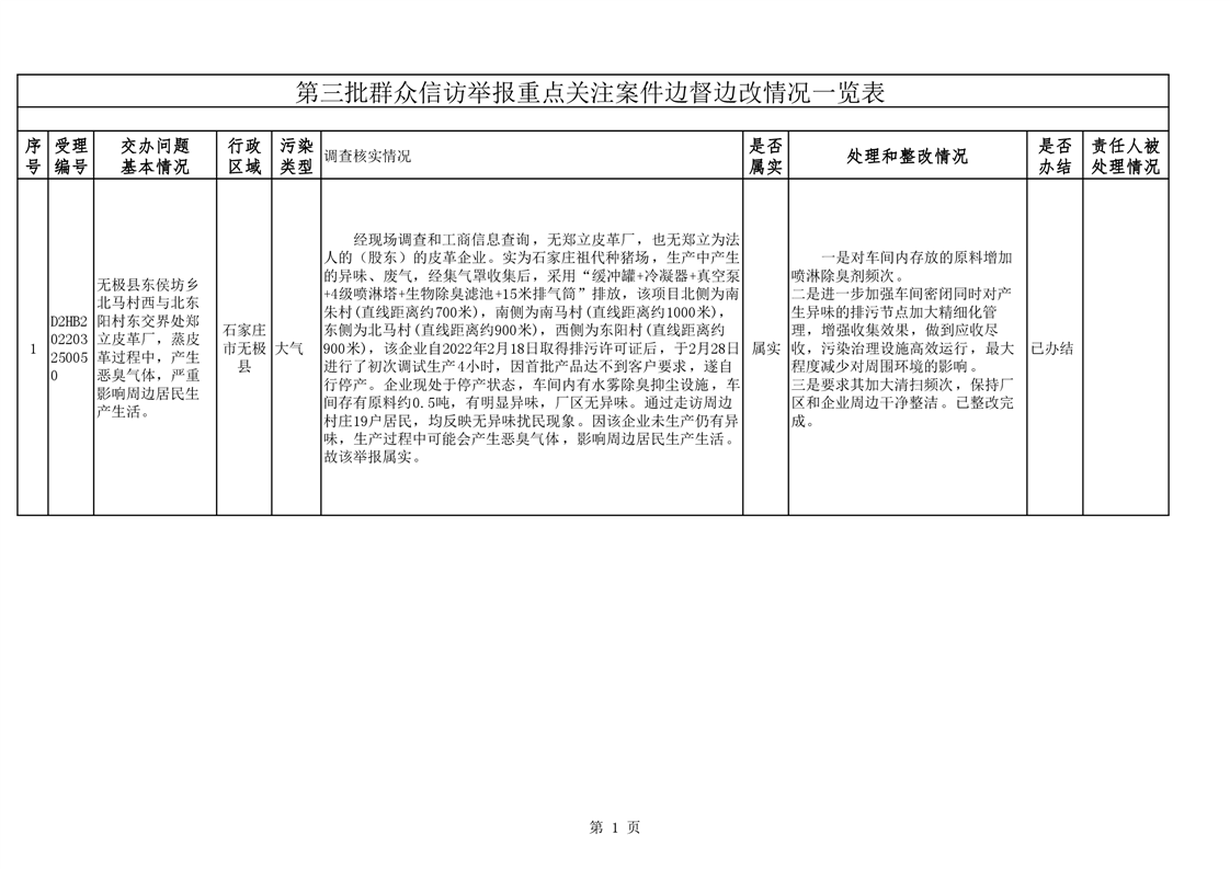 第三批群众信访举报重点关注案件边督边改情况一览表