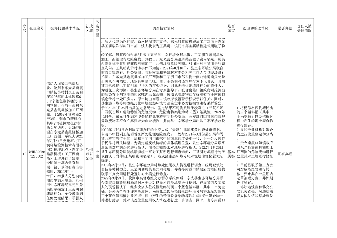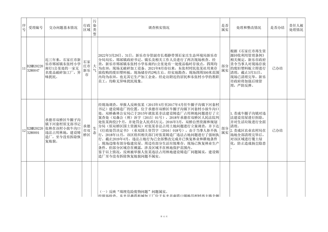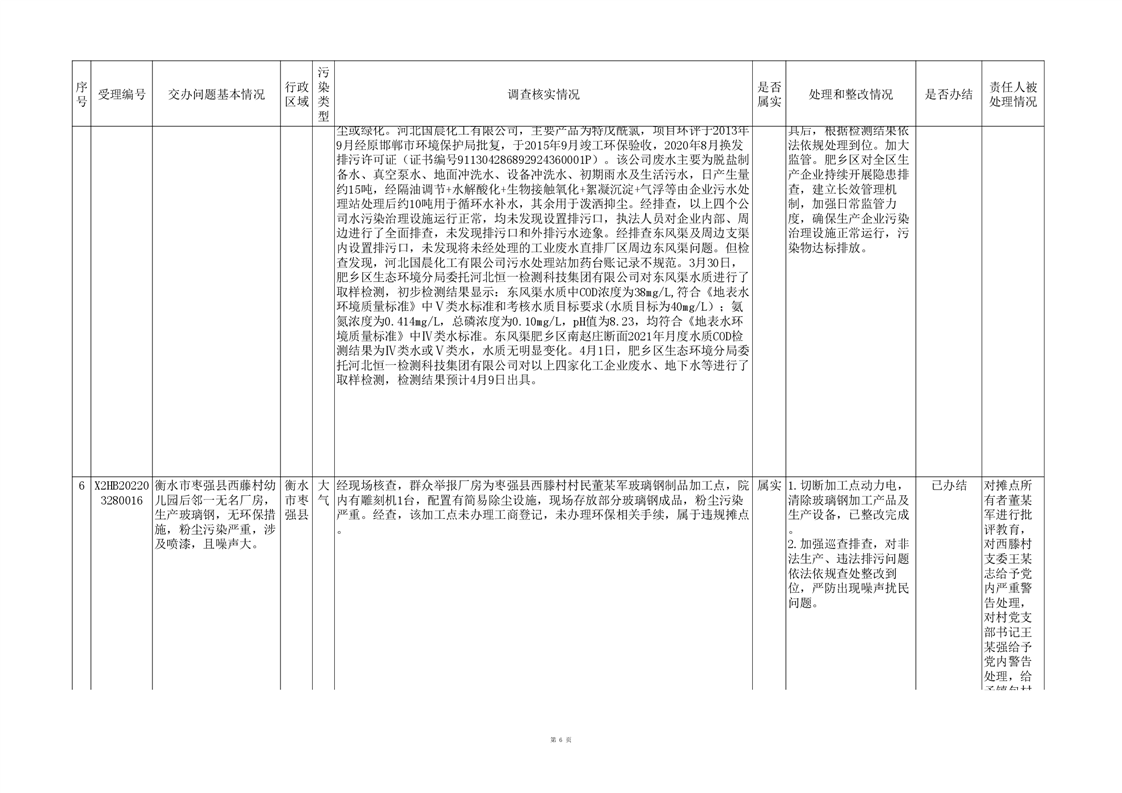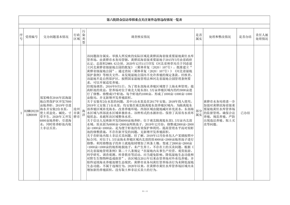 第六批群众信访举报重点关注案件边督边改情况一览表