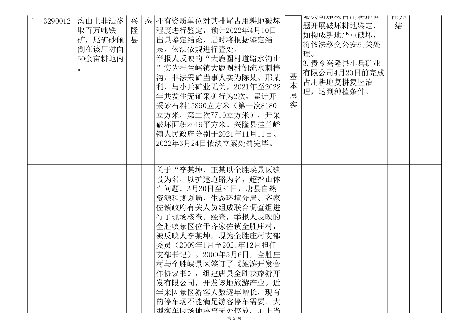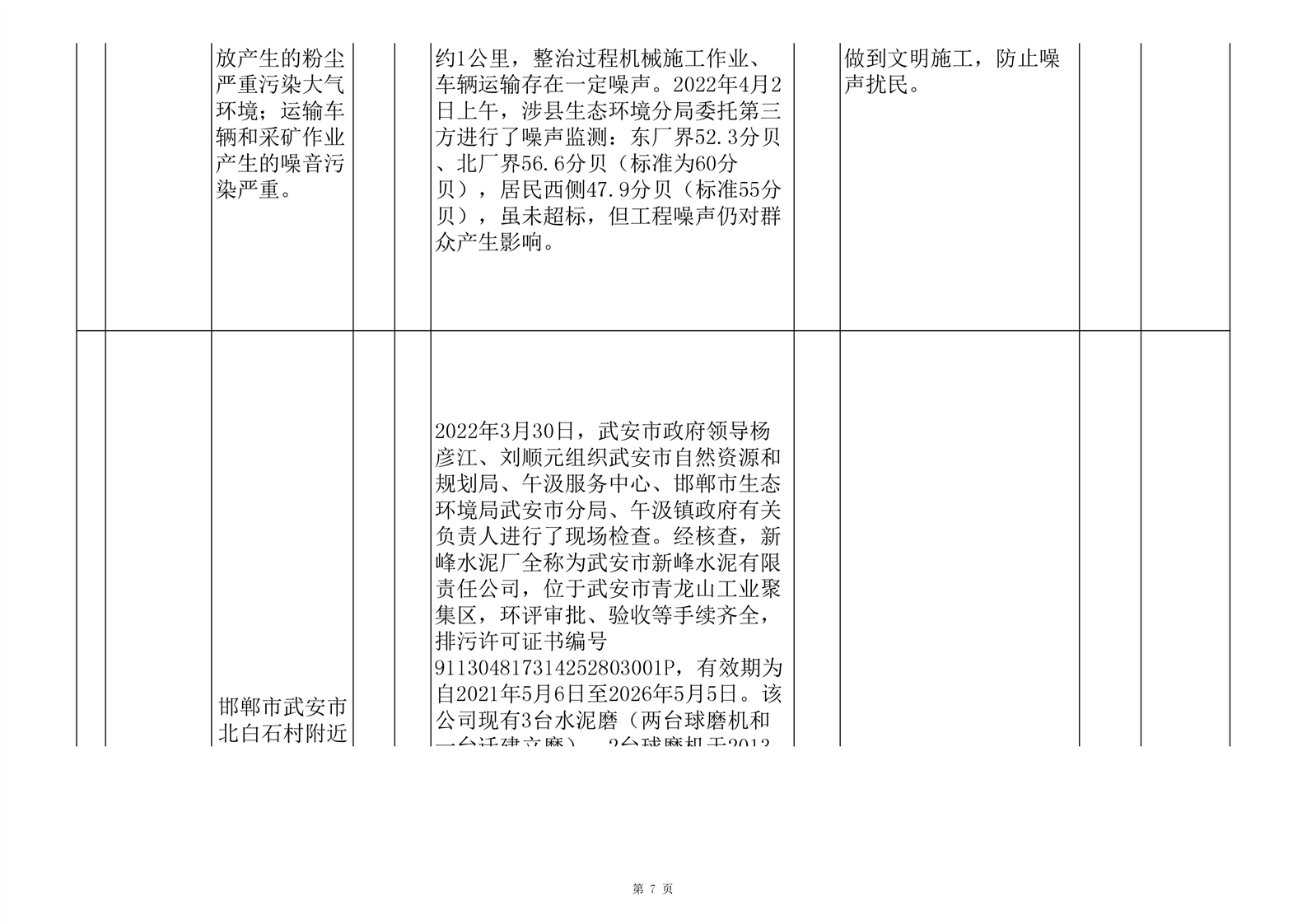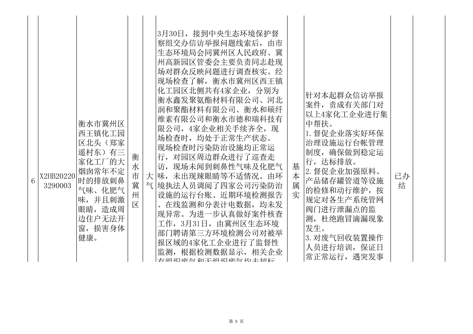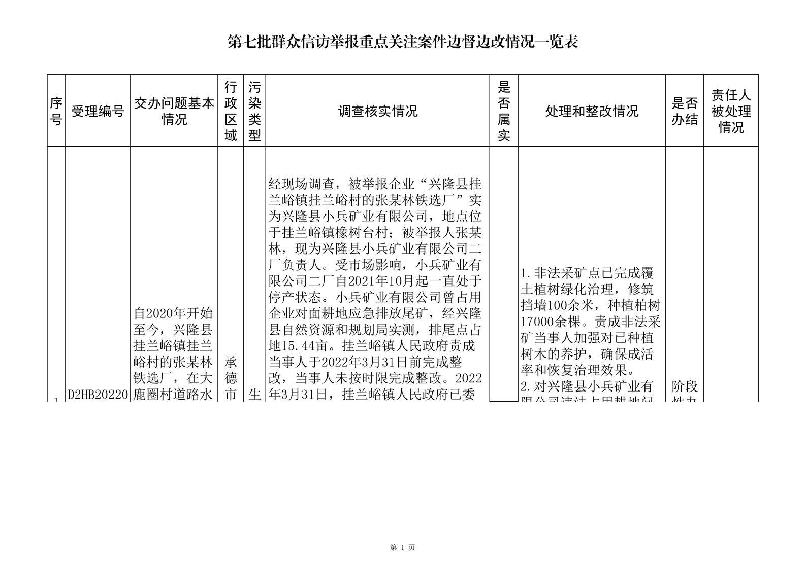 第七批群众信访举报重点关注案件边督边改情况一览表