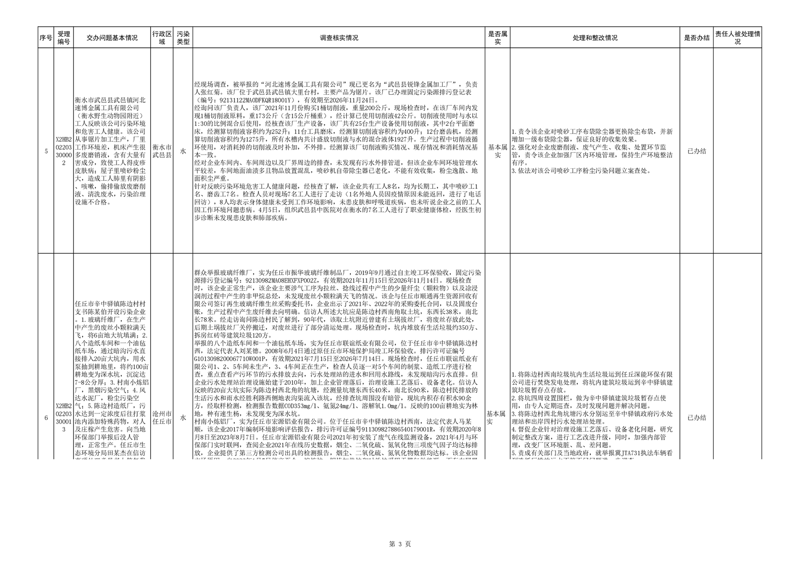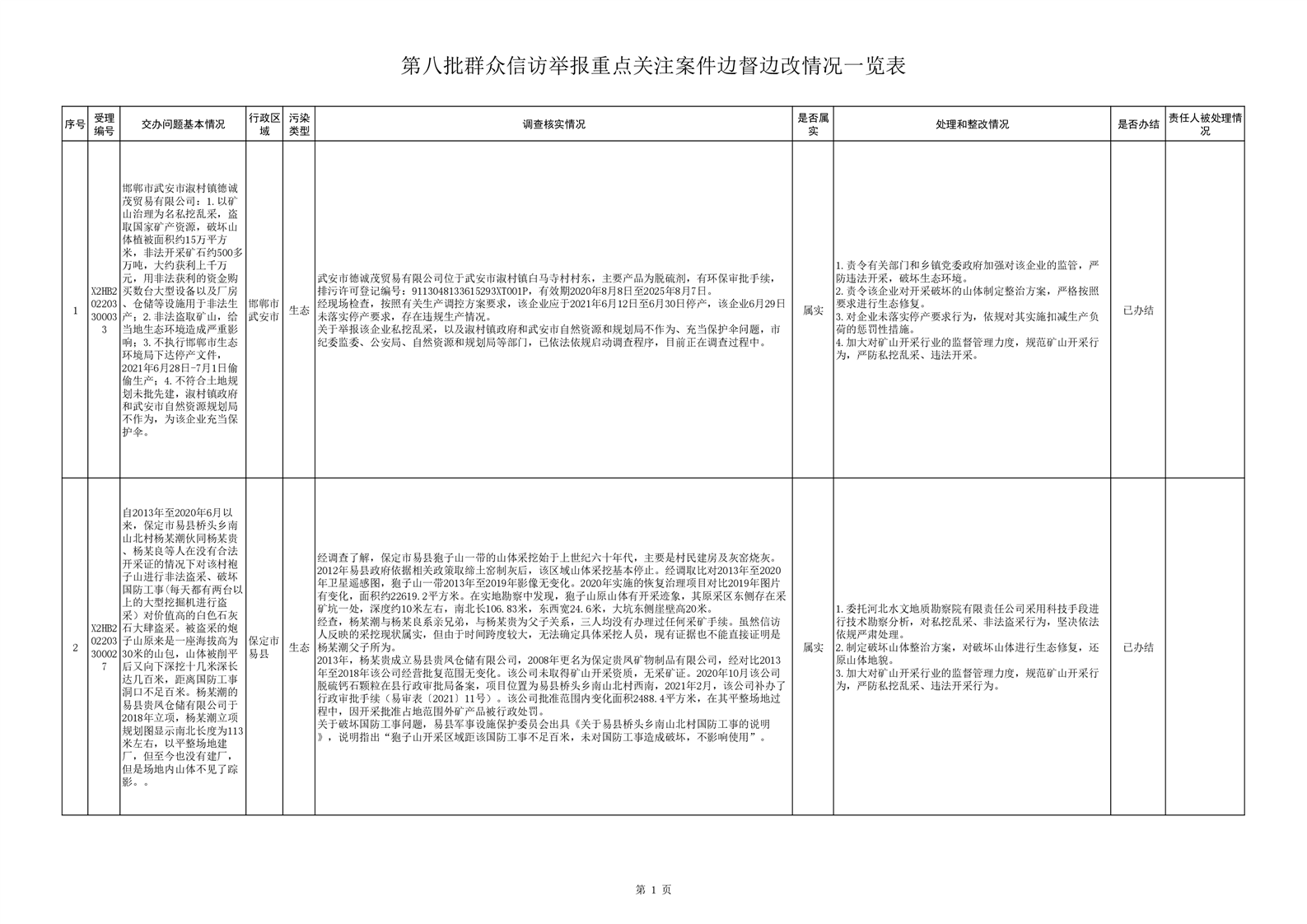 第八批群众信访举报重点关注案件边督边改情况一览表