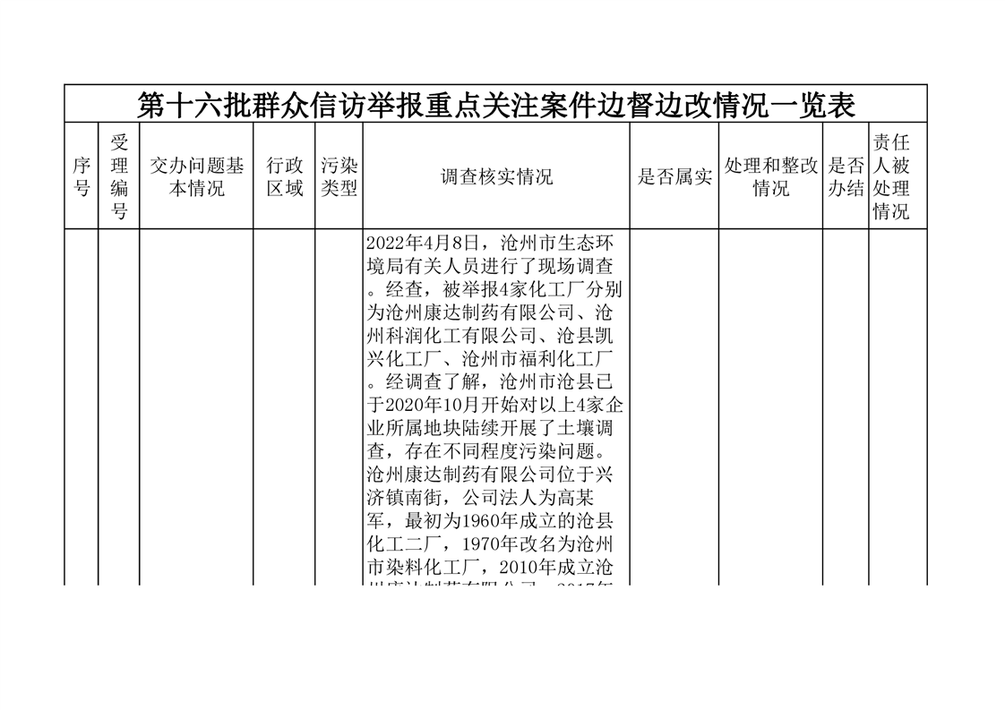 第十六批群众信访举报重点关注案件边督边改情况一览表