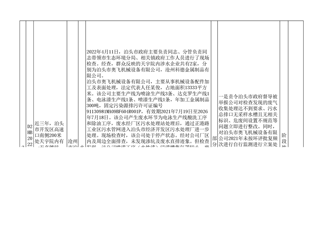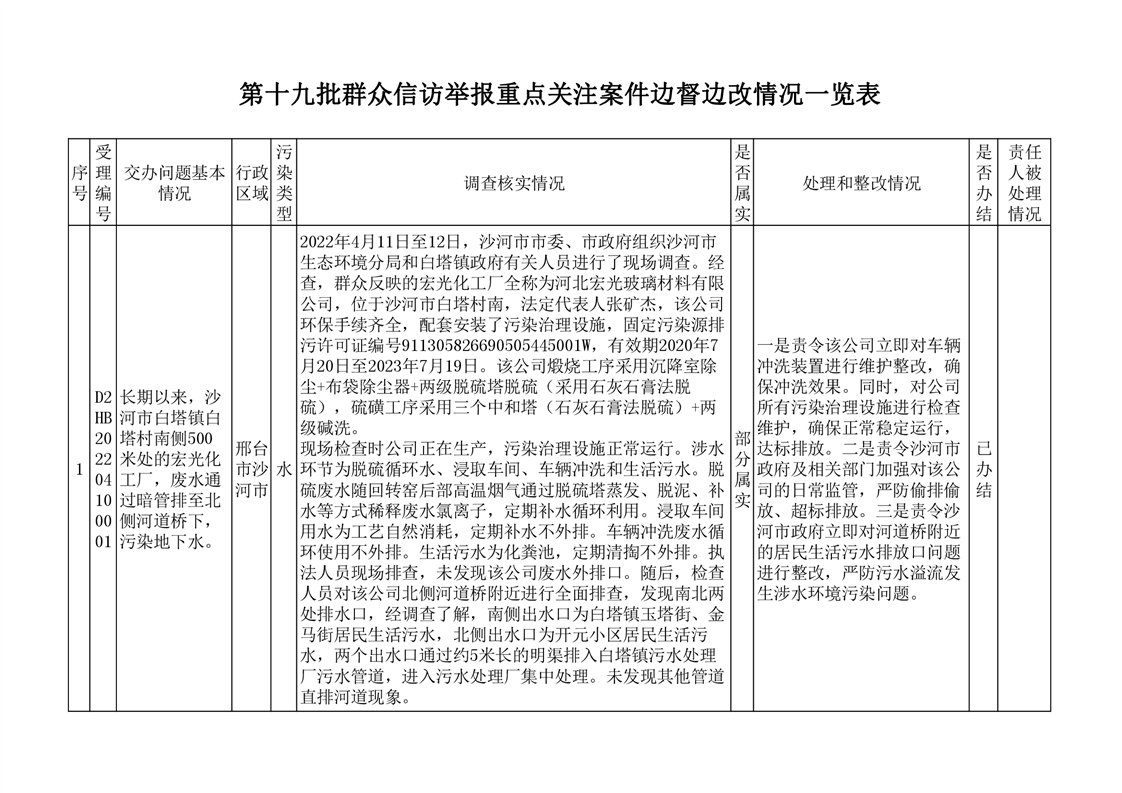 第十九批群众信访举报重点关注案件边督边改情况一览表
