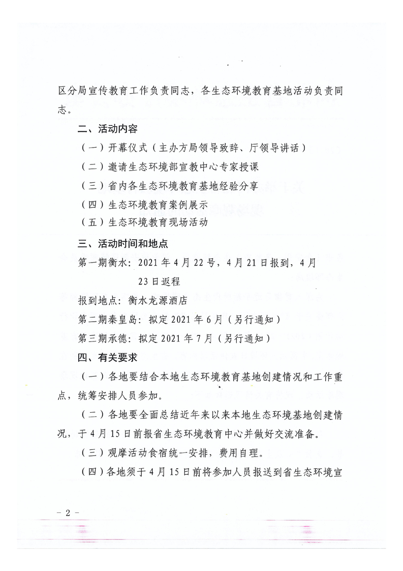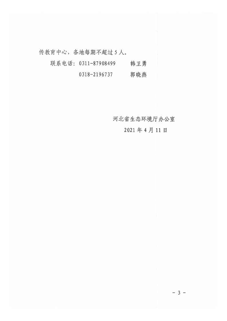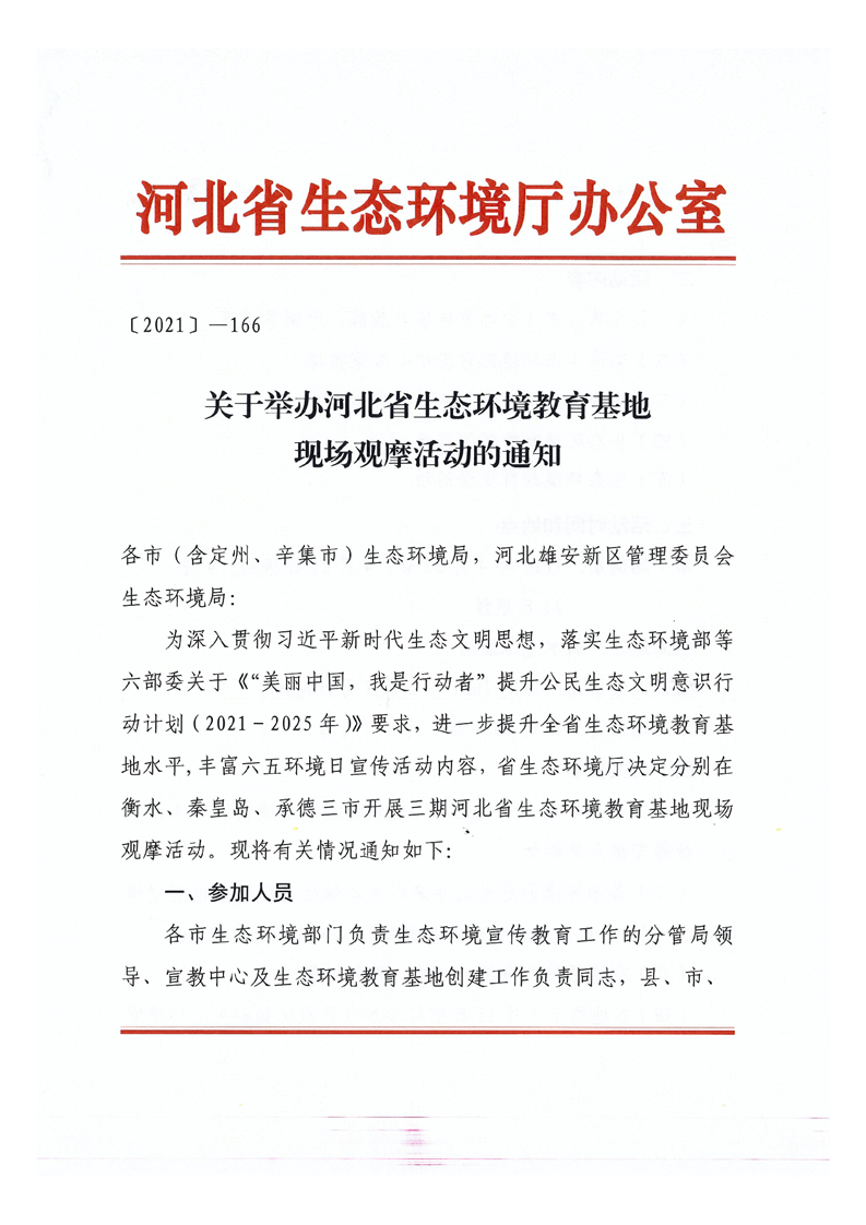 关于举办河北省生态环境教育基地现场观摩活动的通知
