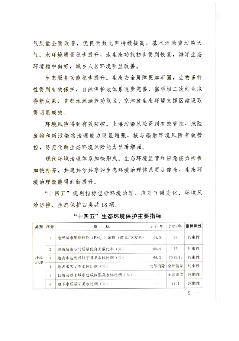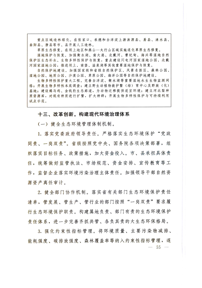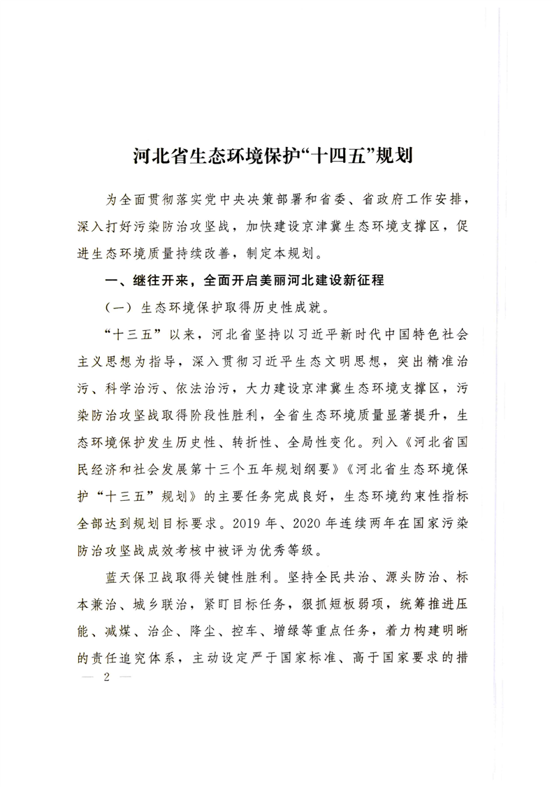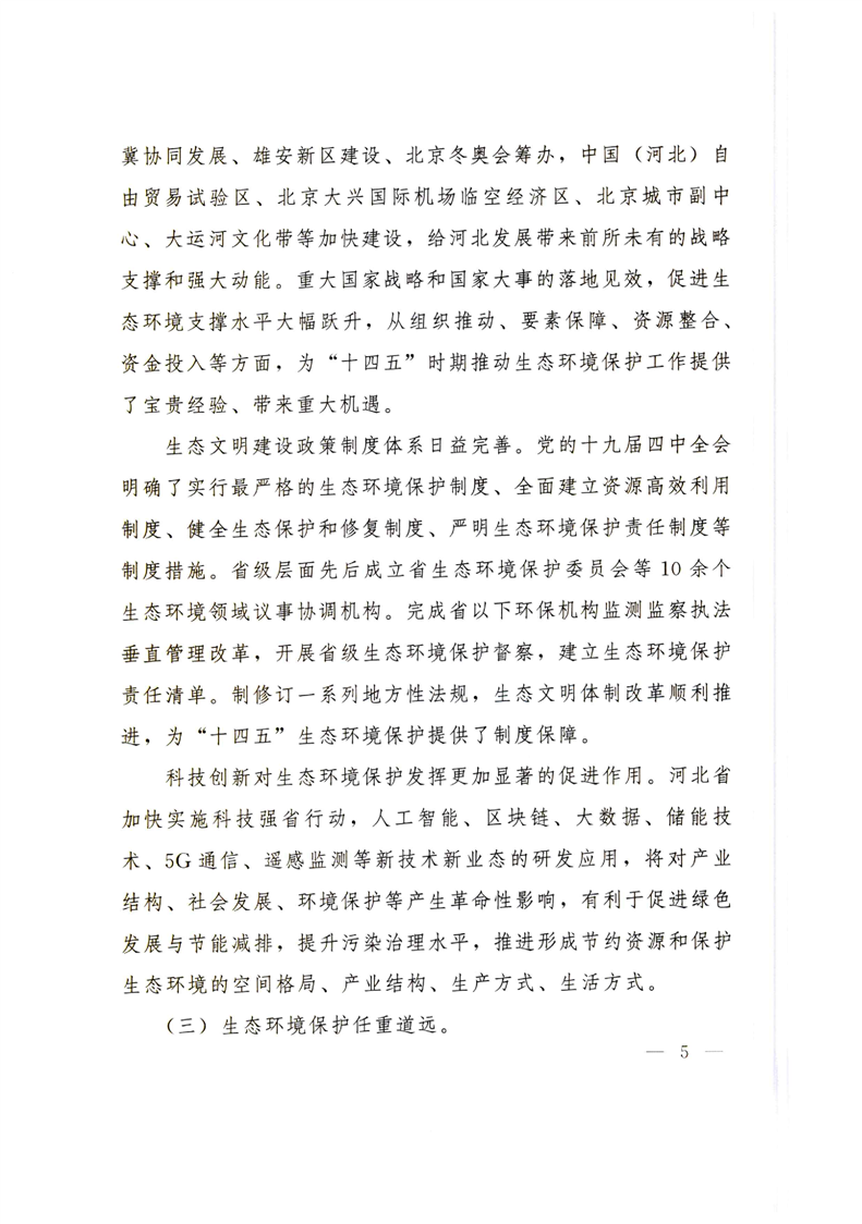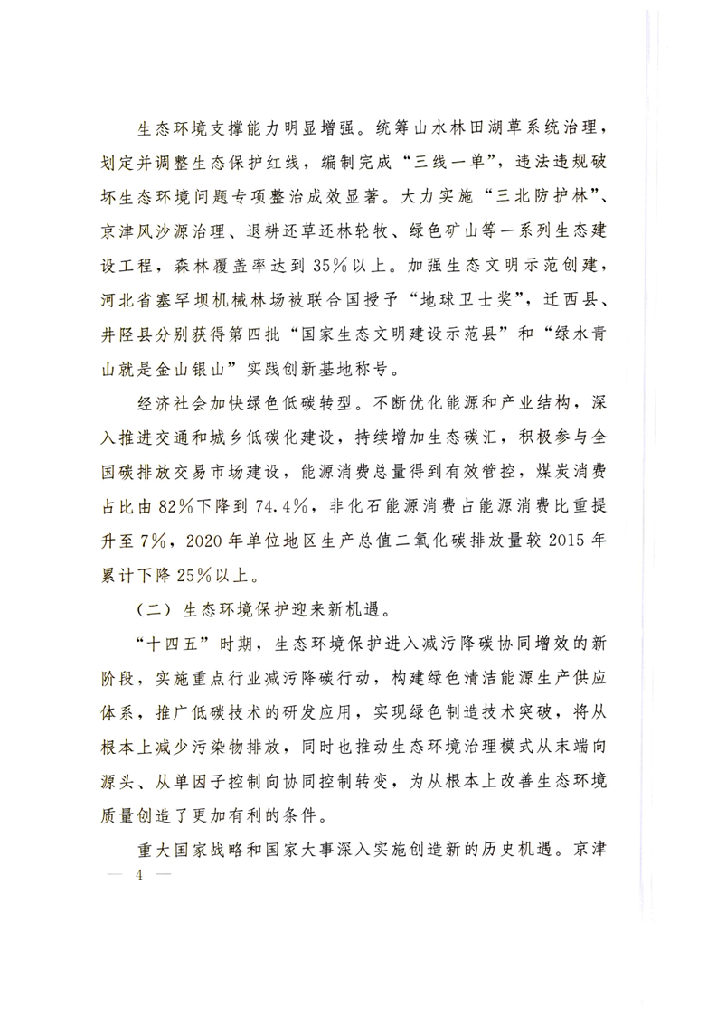 河北省人民政府办公厅关于印发河北省建设京津冀生态环境支撑区“十四五”规划的通知