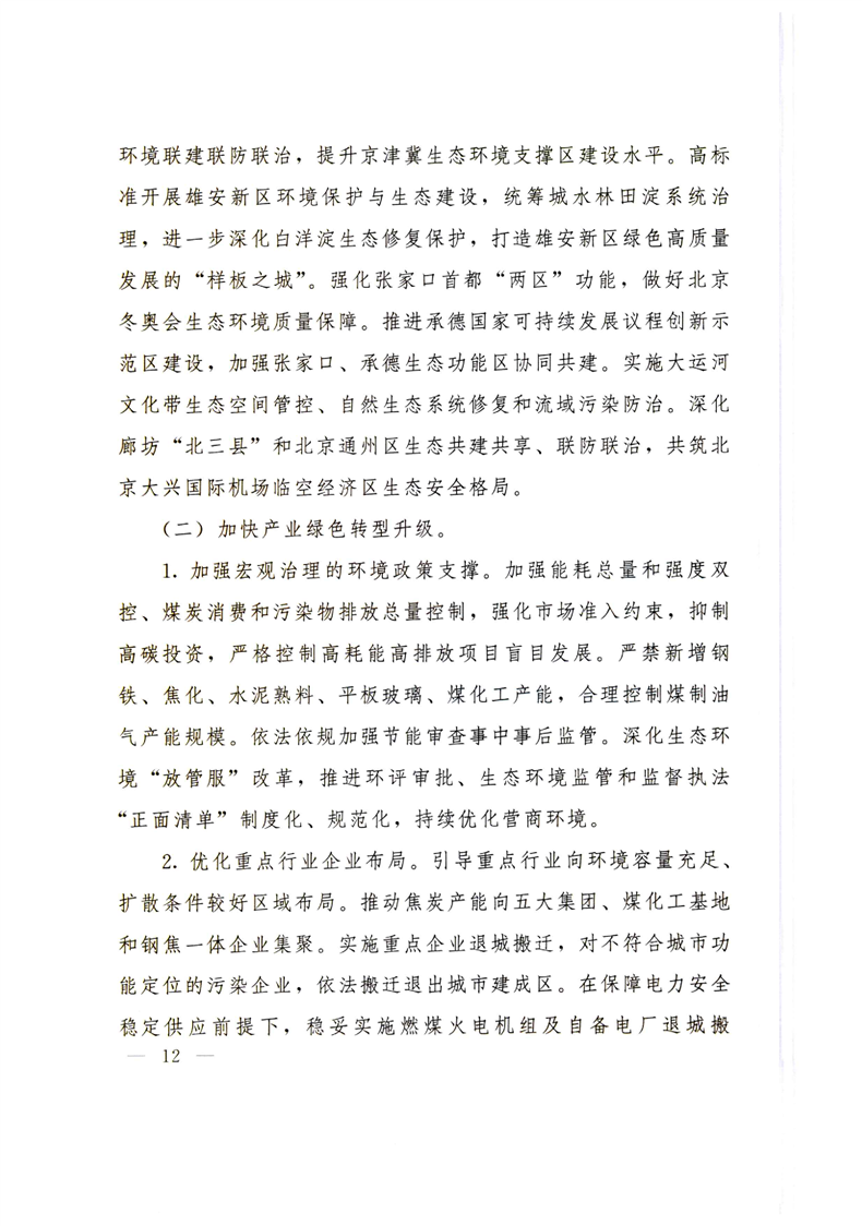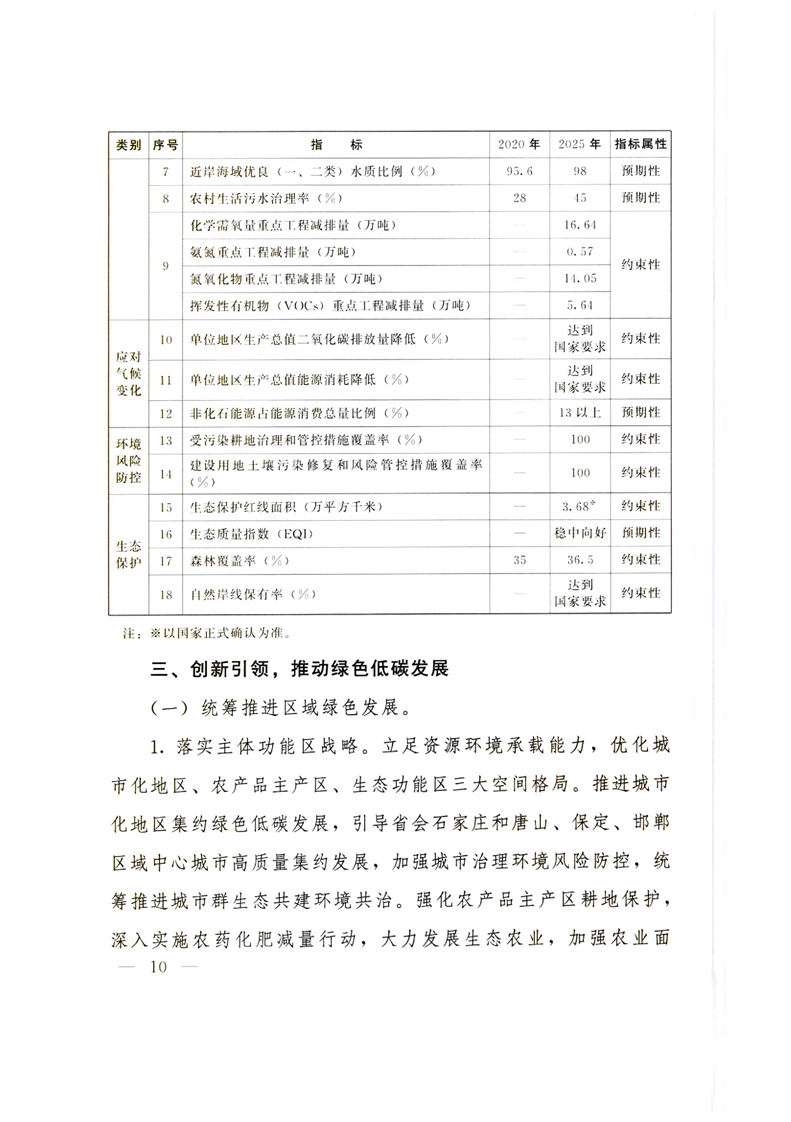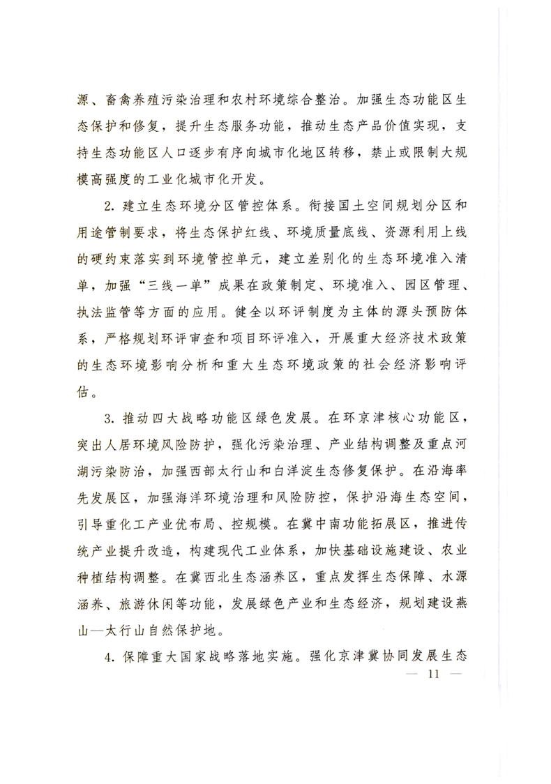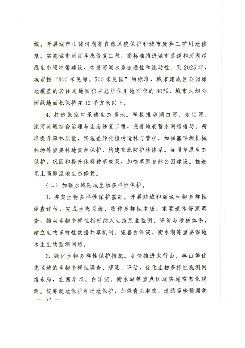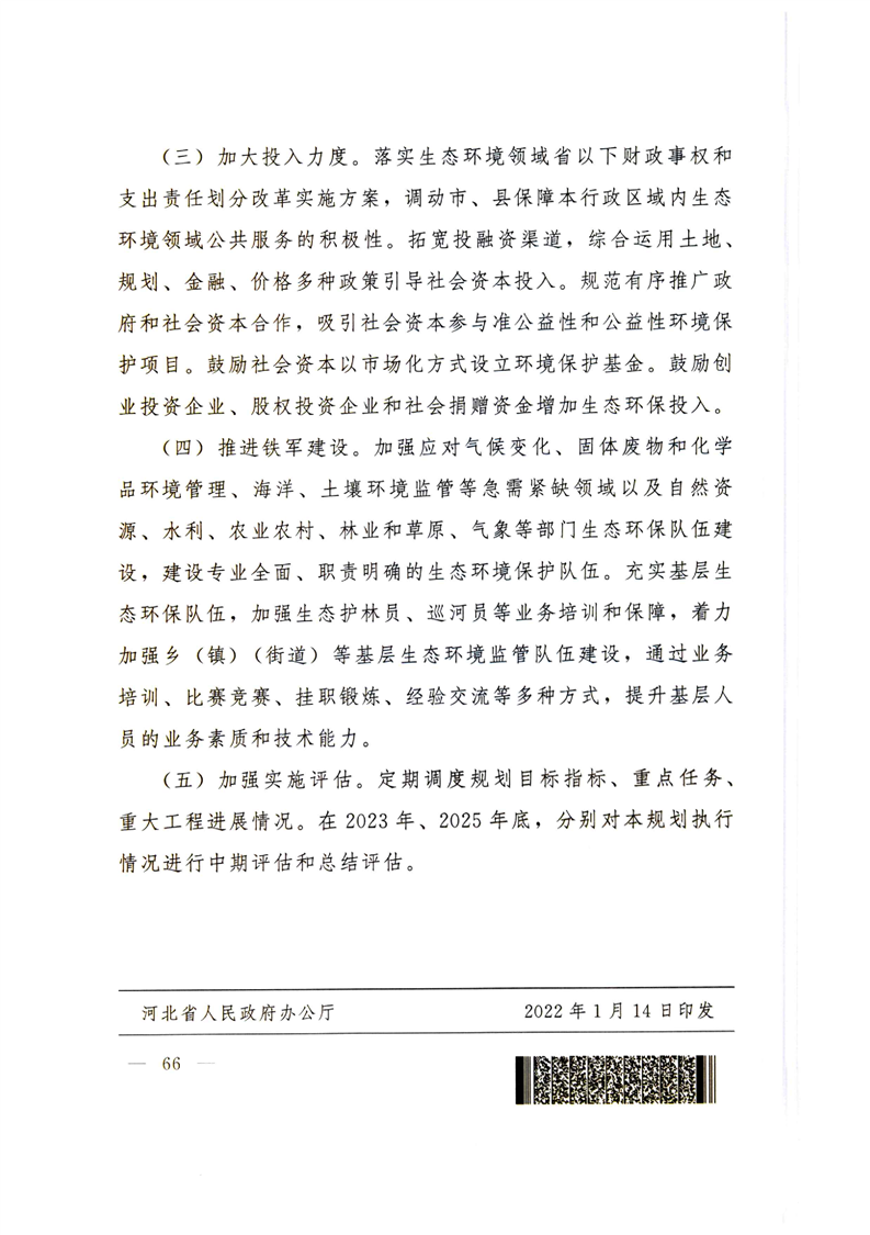 河北省人民政府办公厅关于印发河北省建设京津冀生态环境支撑区“十四五”规划的通知