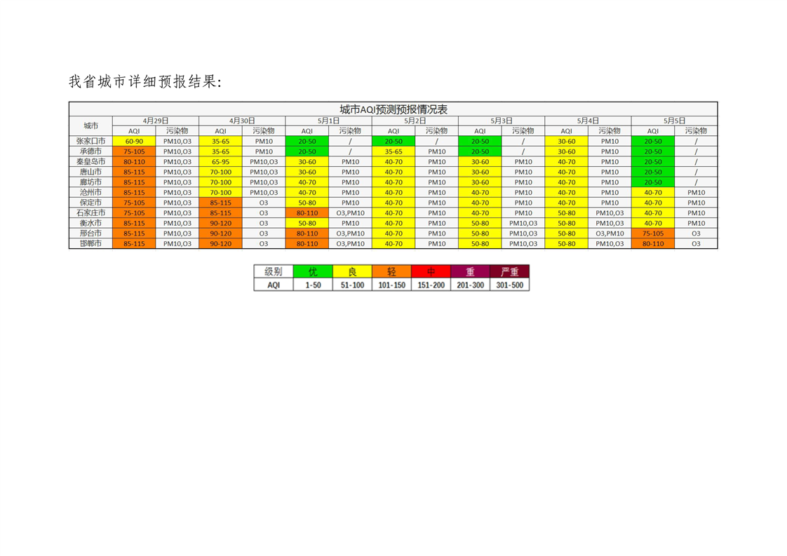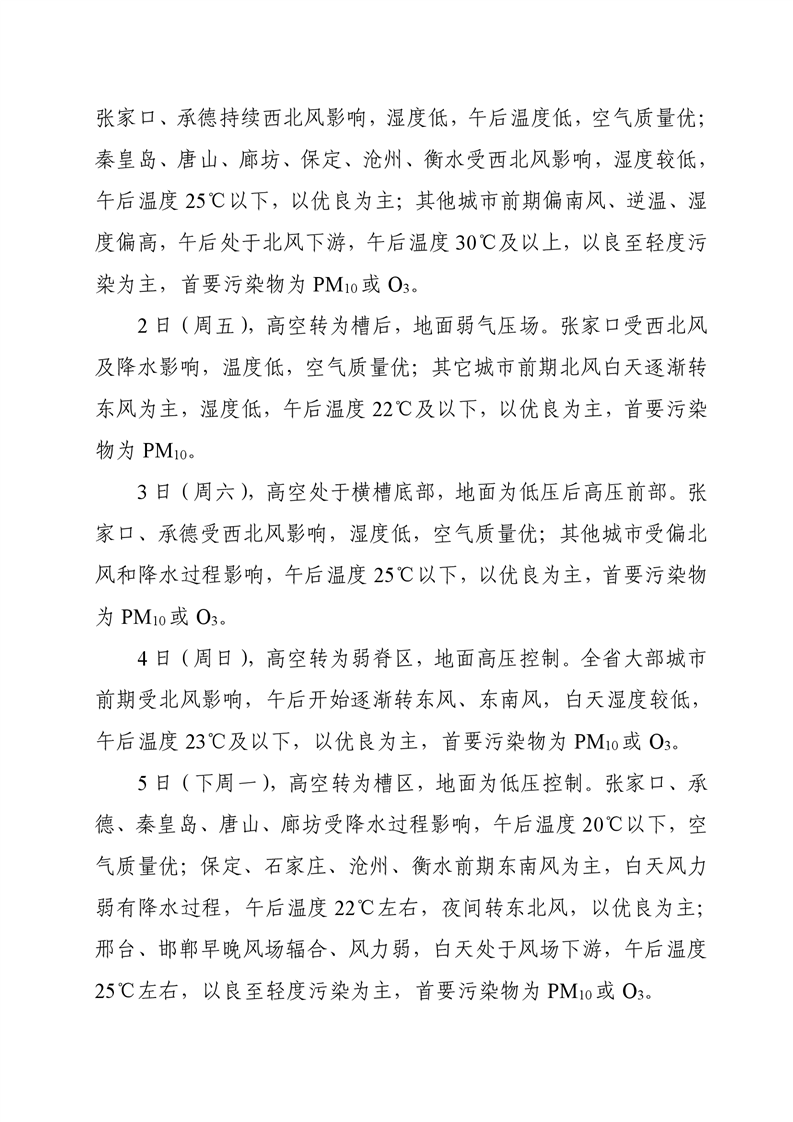 河北省空气质量预测报告周报2025年第18周