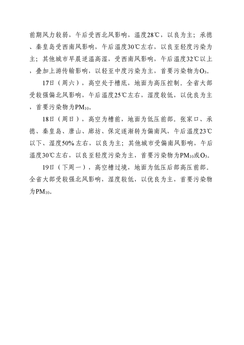 河北省空气质量预测报告(周报)2025年第19周
