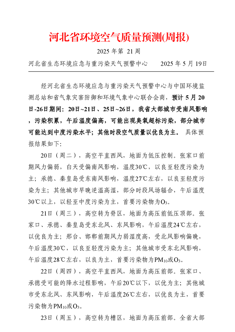来源:省生态环境应急与重污染天气预警中心 时间:2025-05-19