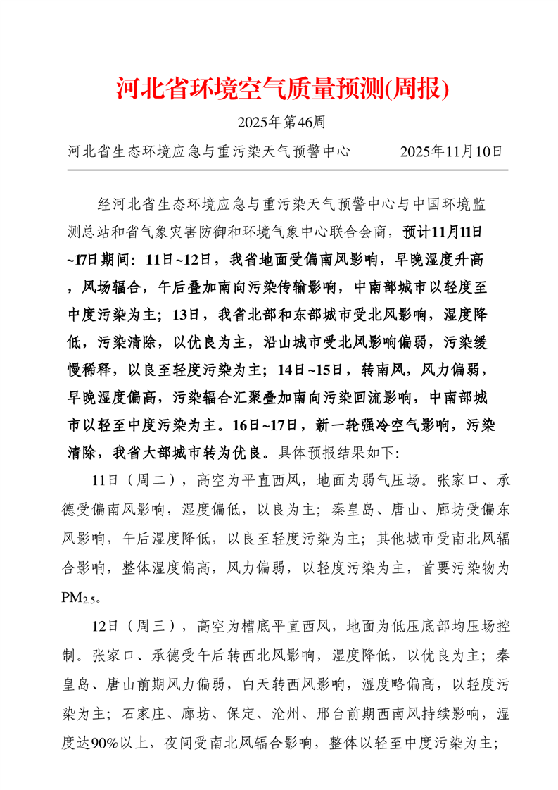 来源:省生态环境应急与重污染天气预警中心 时间:2025-11-10