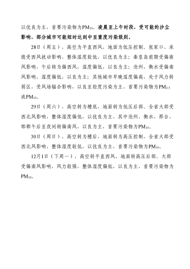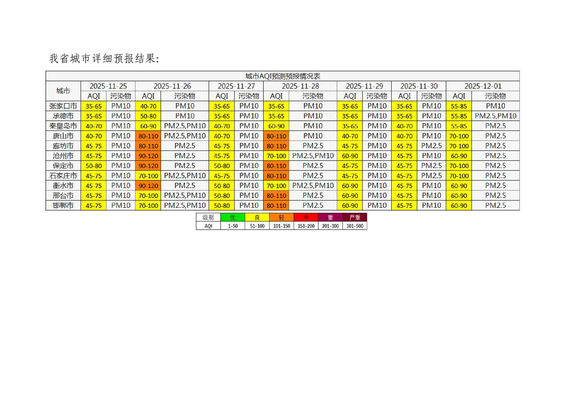 河北省空气质量预测报告(周报)2025年第47周