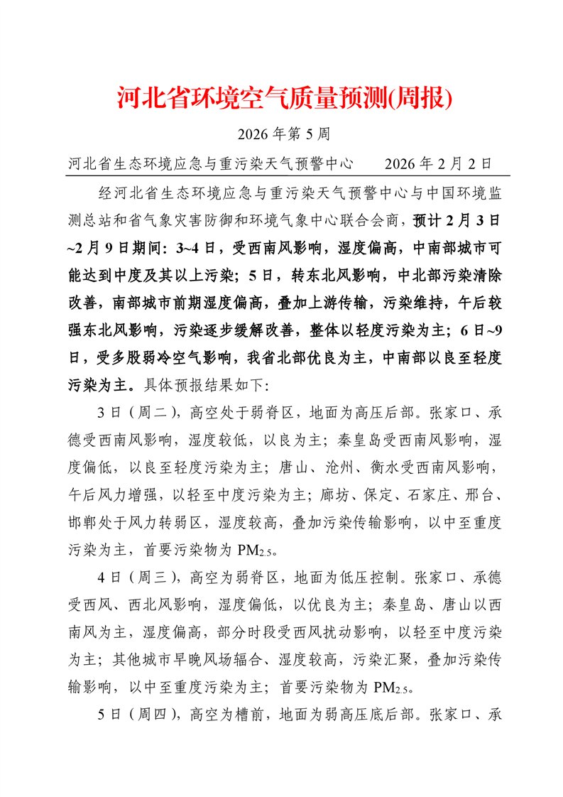 来源:省生态环境应急与重污染天气预警中心 时间:2026-02-02