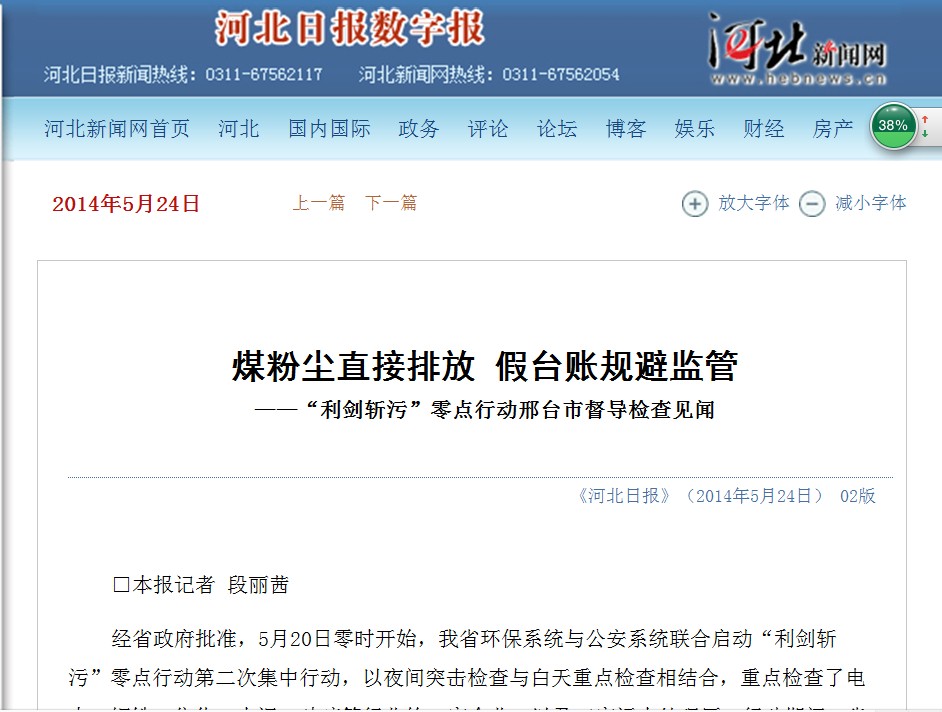 省环保宣教中心组织媒体跟踪报道“利剑斩污”零点行动第二次集中行动 来源:河北省环境保护厅 时间:2014-06-19