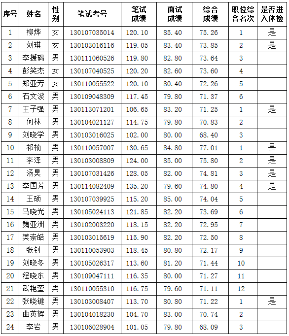 省生态环境厅2019年度公务员录用四级联考综合成绩