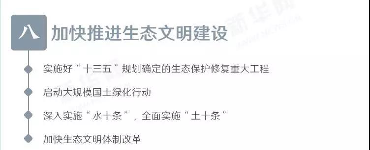 会议提出,加快推进生态文明建设。要实施好“十三五”规划确定的生态保护修复重大工程。启动大规模国土绿化行动,引导国企、民企、外企、集体、个人、社会组织等各方面资金投入,培育一批专门从事生态保护修复的专业化企业。