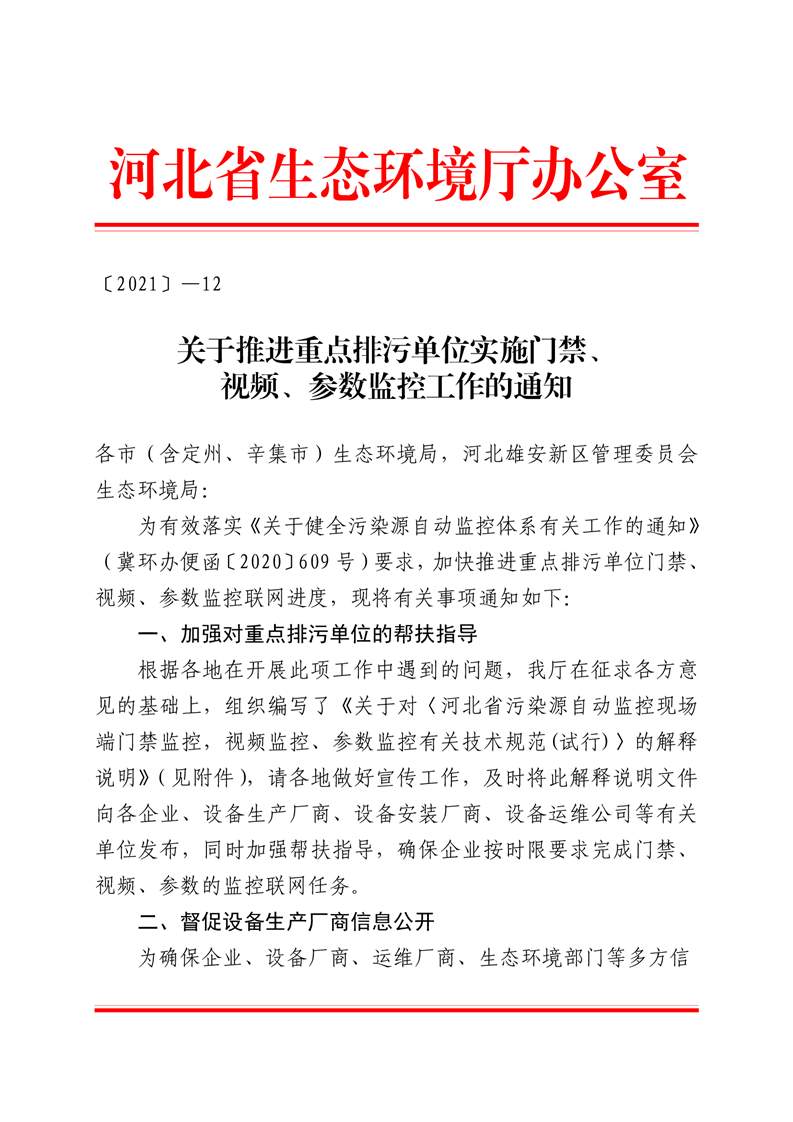 关于推进重点排污单位实施门禁、视频、参数监控工作的通知